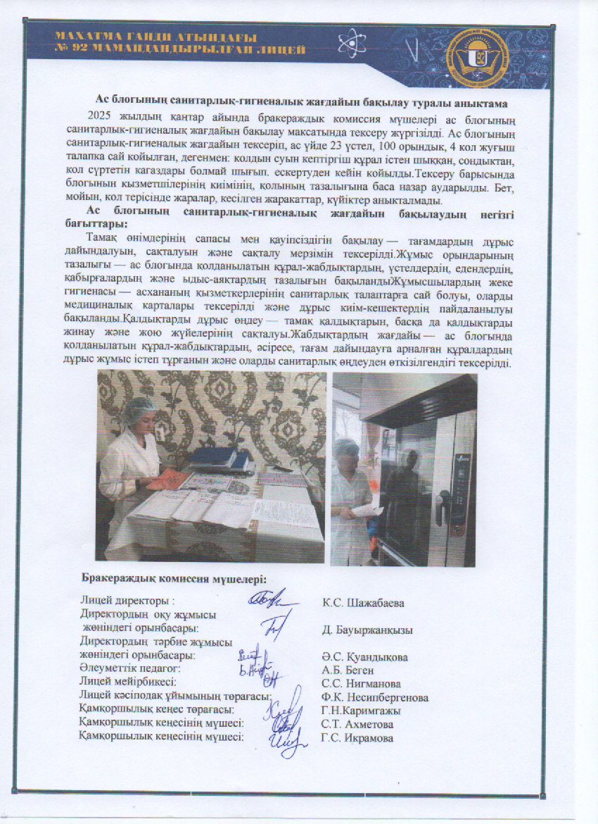 Ас блогының санитарлық-гигиеналык жағдайын бақылау туралы аныктама
