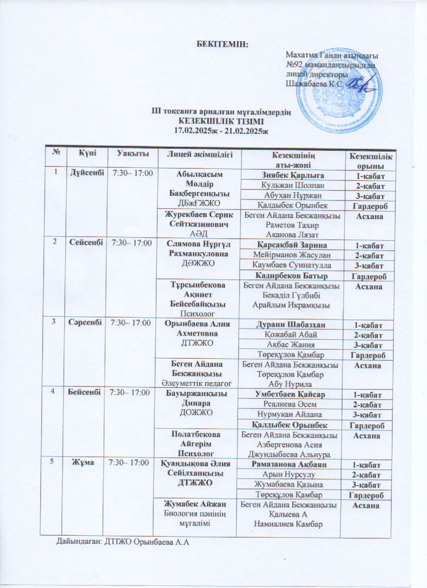 КГУ «Специализированный лицей №92 имени Махатма Ганди» Управления образования города Алматы