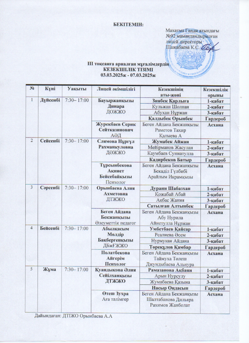 КГУ «Специализированный лицей №92 имени Махатма Ганди» Управления образования города Алматы