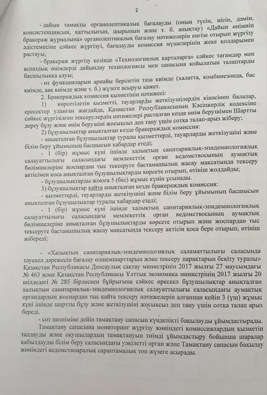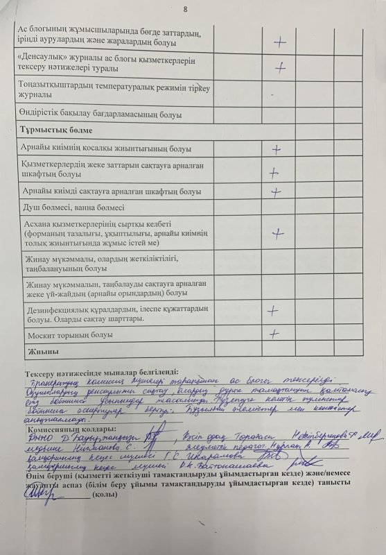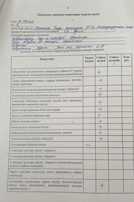 Тамақтану сапасына мониторинг жүргізу жөніндегі комиссия жұмысының №14 ХАТТАМАСЫ
