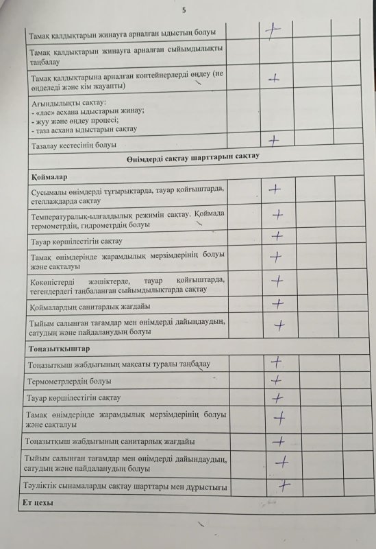 Тамақтану сапасына мониторинг жүргізу жөніндегі комиссия жұмысының №5 ХАТТАМАСЫ