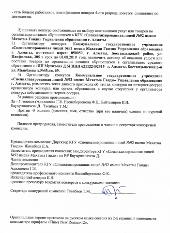 27 апрель 2020 0 1 2 3 4 5 Результаты Конкурса по организации питания обучающихся в КГУ "Специализированный лицей №92 имени Махатма Ганди" Управления образования города Алматы